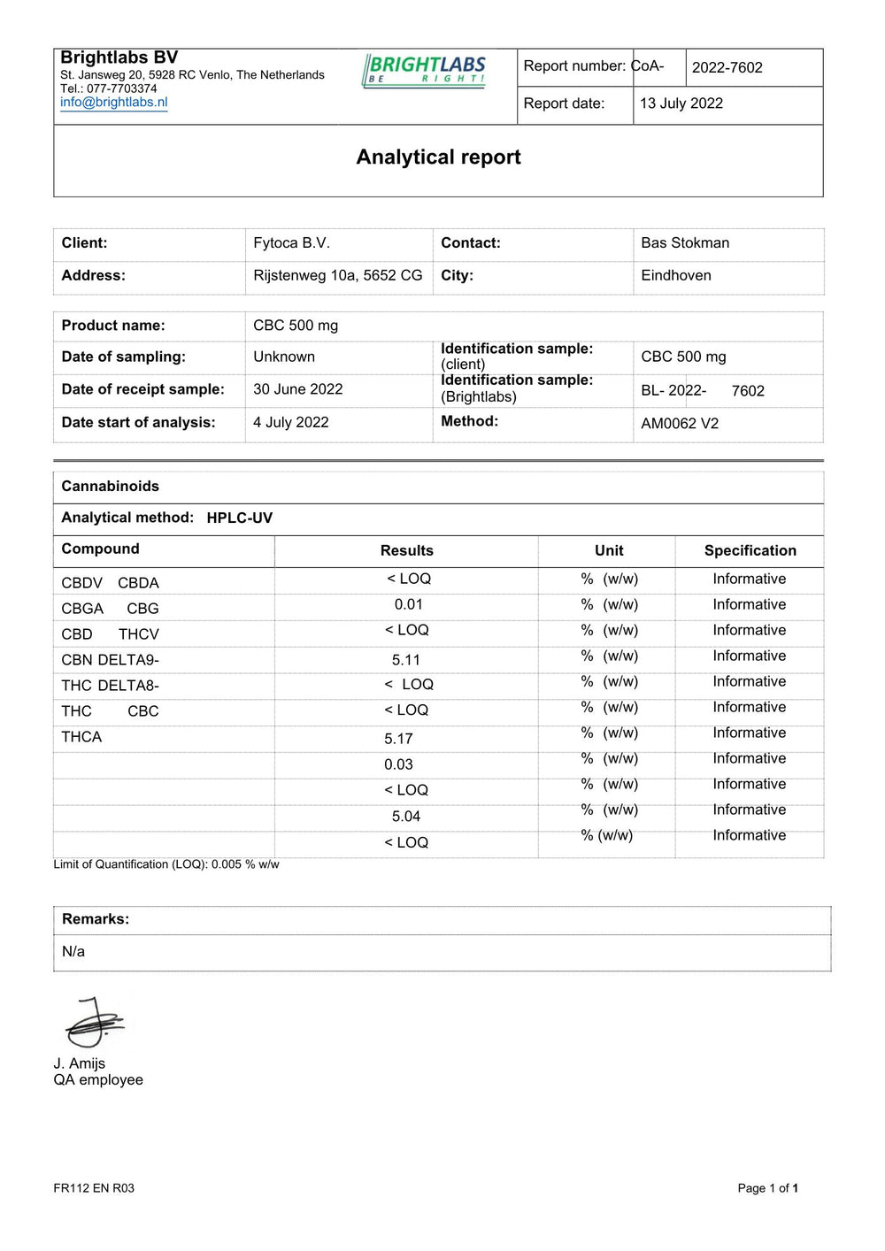 - Inhoud: 10 ml flesje met 500 mg CBC, circa 250 druppels. Per druppel ±2mg CBC.