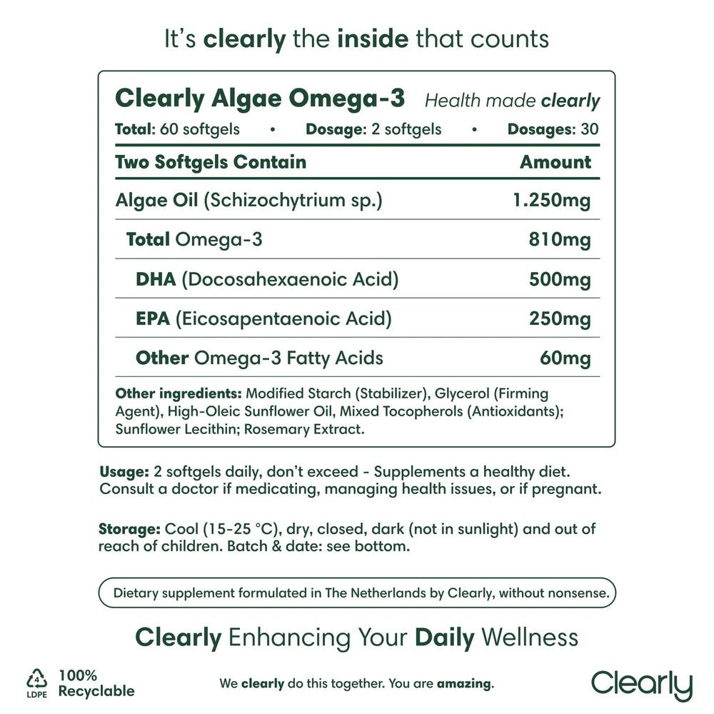 Clearly Algen Omega-3: Plantaardige Omega-3 voor Hart, Hersenen en Ogen