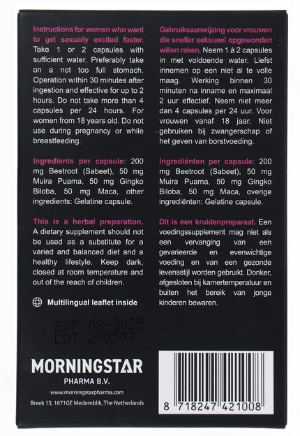 - Lustopwekkend: Bevat kruiden die het libido op natuurlijke wijze stimuleren.