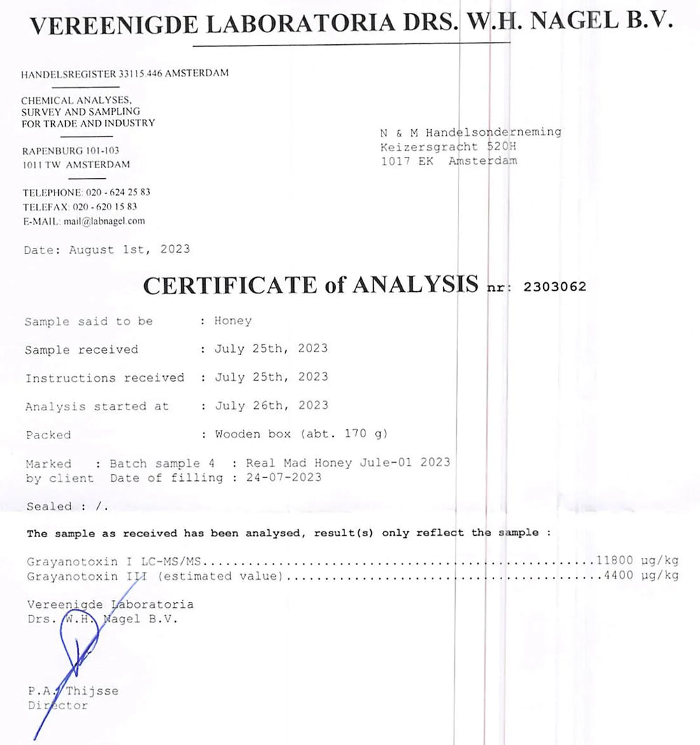 De magie van Mad Honey komt van de nectar van zeldzame Rhododendronbloemen, die de psychoactieve stof Grayanotoxine bevatten. Waar andere aanbieders vaag blijven, is DrSmartshop 100% transparant. Onze batch bevat een krachtige, geverifieerde concentratie: